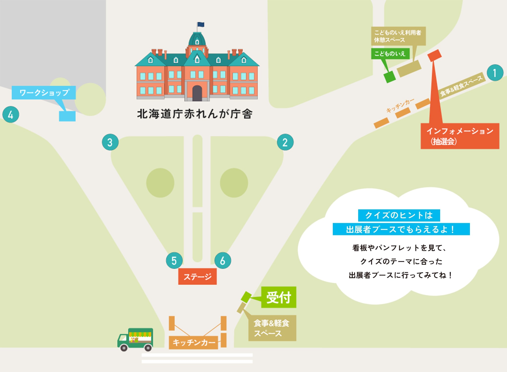 - 会場内にある6か所のポイントを巡って6問の3択クイズに挑戦しよう。