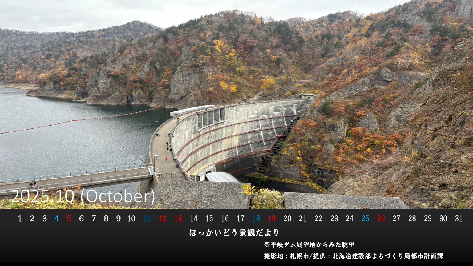10月は、札幌市の「豊平峡ダム展望地から見た眺望」です。
