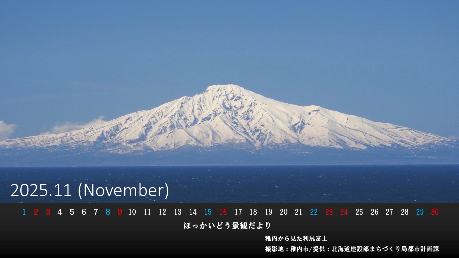 11月は、稚内市の「稚内から見た利尻富士」です。